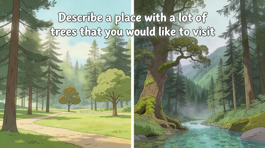 Bilibili: 雅思口语Part 2 – Describe a place with a lot of trees that you would like to visit_哔哩哔哩_bilibili