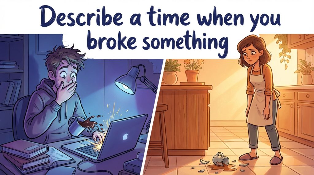 You should say: what it was, when and where it happened, how you broke it, and explain what you did afterwards.