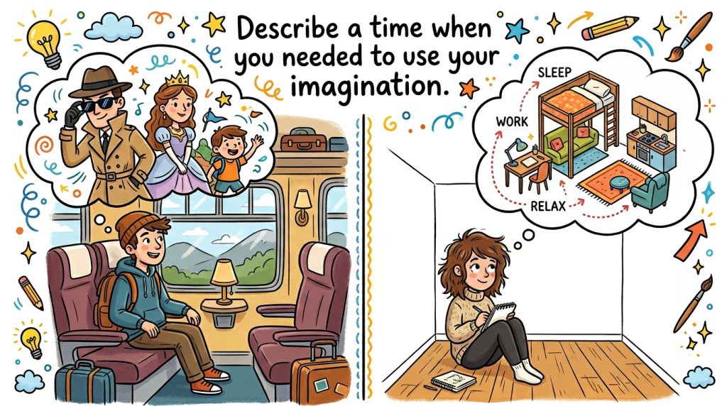 You should say when it was, why you needed to use your imagination, how difficult or easy it was, and how you felt about it.